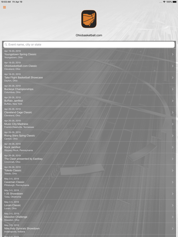 The Ohio Basketball app will provide everything needed for team and college coaches, media, players, parents and fans throughout an event. - Team search - View schedules - View pool standings - View brackets - Receive game notifications - Venue directions - Team rosters (if offered) - Live results and box scores (if offered) - View documents - Event messages - Event contact - Event sponsors