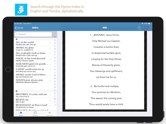 The App is a mobile Hymn based on the Celestial Church of Christ Hymn Book. Available on iPhone, iPad & iPod Touch (sync’s across all platform when purchased on one); supports both English and Yoruba language. The App offers easy searching through hymns, categories, favourites, Index, social sharing, and more.