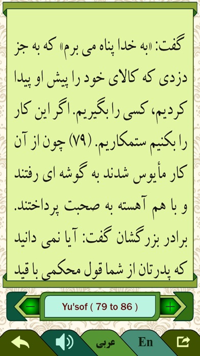 - Two Audio Narrations in Persian, and Three different Arabic Narrations (Qaris)