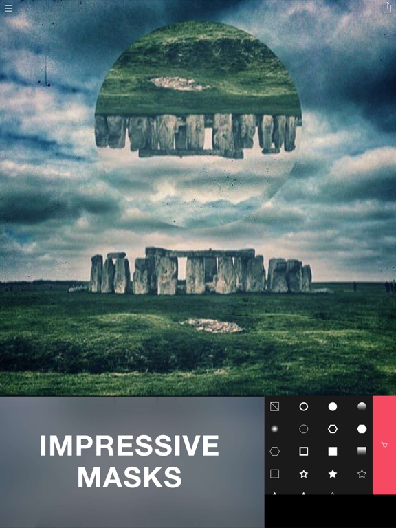 Blend videos, photos, or a combination of the two. You can select pictures and videos from your personal library and/or use the special Artists Collections of unique visuals created by talented emerging artists.