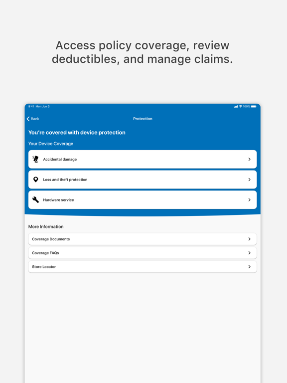 • Access to your coverage summary, coverage documents, and file or track a claim