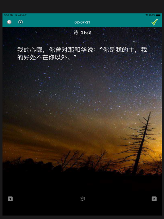 要堅持每天都聽基督徒歌曲並不是一件容易的事情。我們常常是虎頭蛇尾,中途而廢。在新的一年到來之際,本app為你提供一年裡每天聽一首非常好聽的基督徒歌曲,同時讀一段經文的可行計劃。這些歌曲和經文按2021年年曆平均分配在365天裡。你可以像翻日曆那樣每天在固定的時間裡欣賞這一天分配給你的歌曲和經文。完成後,請確定你已經完成,這樣你便隨時可以了解自己目前的進展狀態,知道自己已經完成了多少天, 今年還剩下多少天。