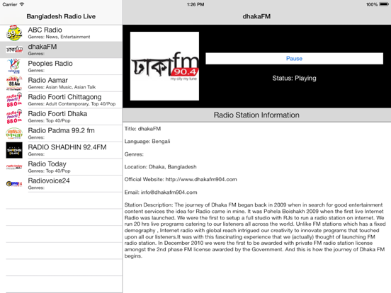 One of the great features provided in this app is that this app support multitasking / background mode. This means that you can listen to any of your favorite Bangladesh radio channel and in the mean time, do other stuffs with your device such as reading books and browsing websites.