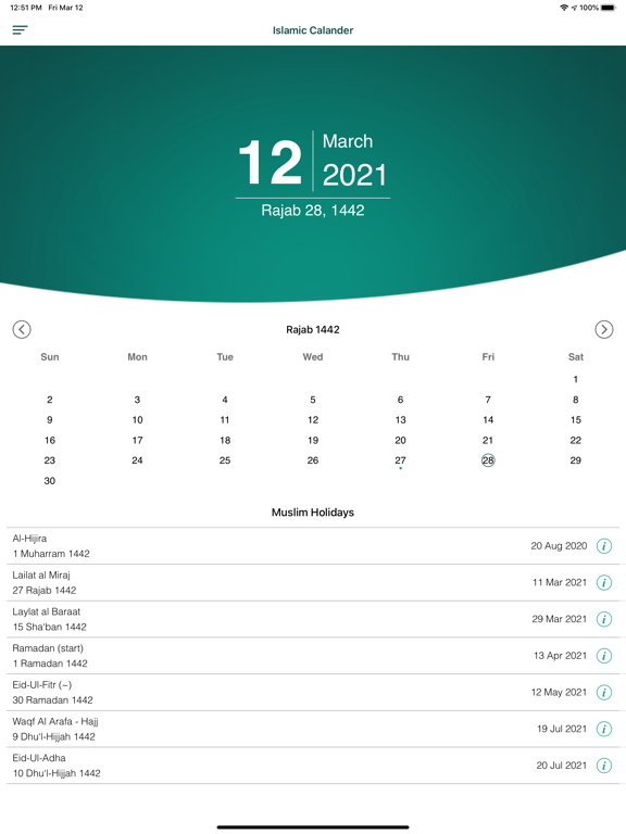 - Provides upcoming Muslim Holidays / Islamic Events with Hijri and Gregorian dates
