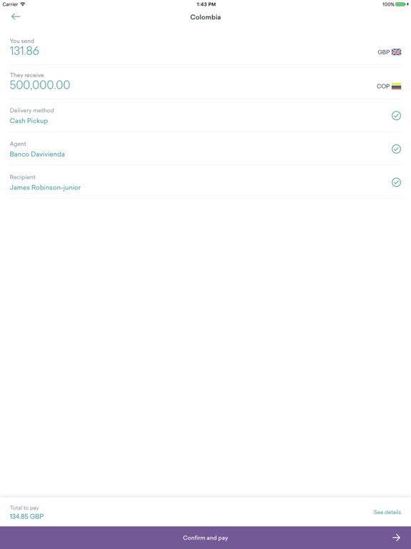 • When your transfer is complete, you and the recipient receive an SMS or email alert