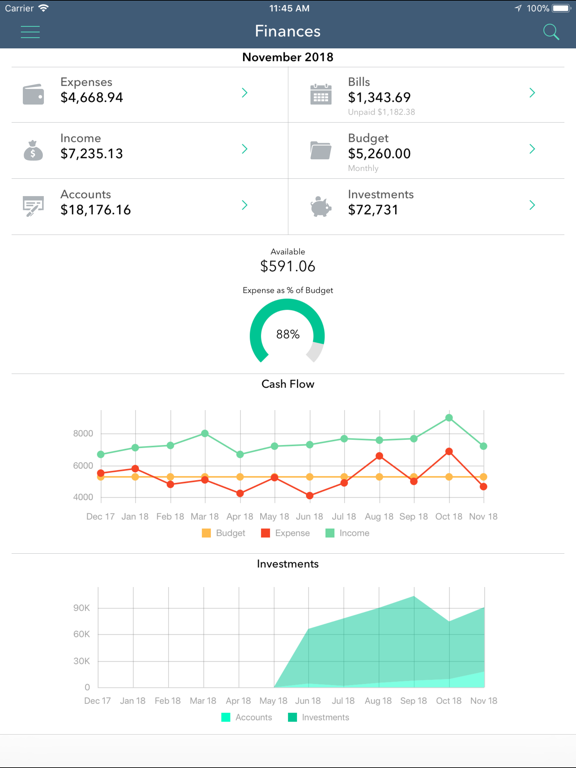 - For cash flow, Finances supports tracking expenses and income, and includes support for budgets, accounts, payees, and bill tracking.