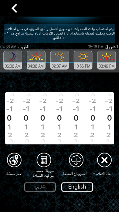 - إمكانية إختيار طريقة حساب أوقات الصلاة.