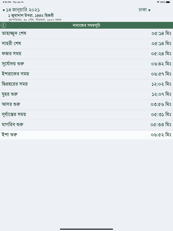• Contains Ramadan calendar 2021. It will provide accurate Sehri, Iftar time from Islamic Foundation of Bangladesh.
