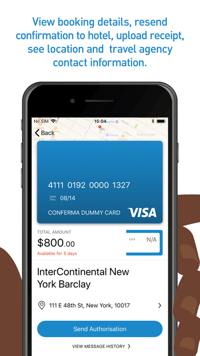 Conferma Pay is also great for corporations using travel agencies to booking flights or hotels. The app provides access to the flight or hotel booking information and allows travellers to resend to authorisation forms and take pictures of invoices.