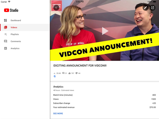 The official YouTube Studio app makes it faster and easier to manage your YouTube channels on the go. Check out your latest stats, respond to comments, create and update your video thumbnail images and account profile pictures, and get notifications so you can stay connected from anywhere.