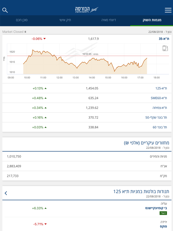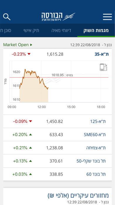 The official application of the Tel Aviv Stock Exchange (TASE) available in Hebrew.