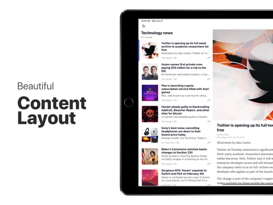 Used globally by techies, business professionals, digital marketers, research institutions, content publishers, and more - Inoreader is a news app that offers not only a beautiful and light reading experience, but also powerful news aggregation and curation features that let you build a perfectly personalized news feed.