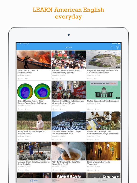 This app is designed to bring you best experience to improve your English. You can read, listen and watch the lessons everywhere with your mobile devices. Even if you are already good at English, you can also learn more about American culture, history as well as latest news in the world.