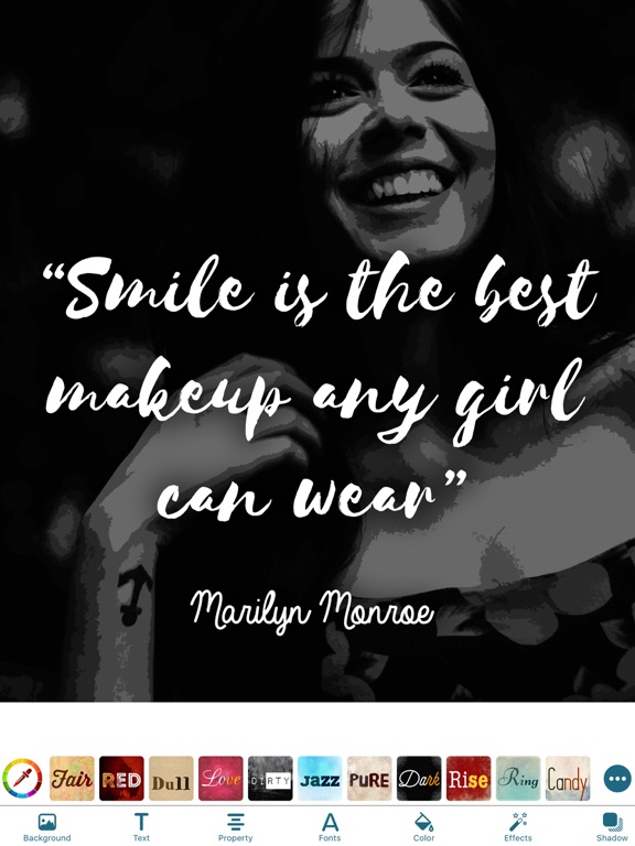 Quotes Creator is the best and easiest way to create and share your quotes with the world. Quotes Creator ready with customizing options such as background, text colors, text size, and fonts, or you can choose your photo from your Photo Gallery to be used as background, so you can share your own quotes with your friends.
