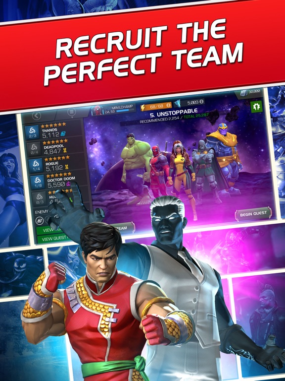 • Assemble a mighty team of heroes and villains (choosing Champions such as: Iron Man, Hulk, Wolverine, Storm, Star-Lord, Gamora, Spider-Man, Deadpool, Magneto and Winter Soldier)