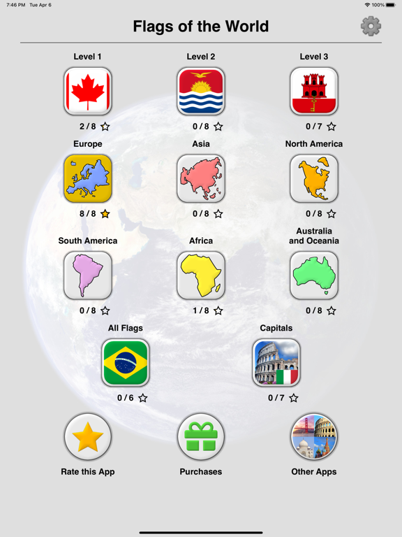 Now you can learn flags separately for each continent: from Europe and Asia to Africa and South America.