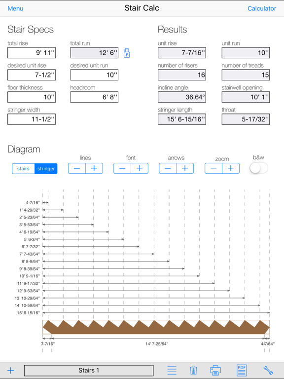 Stair Calc Pro is a fast, easy way to create a schedule of stair calculations for any size of job or just to perform a single calculation on the fly. Put your pencil down and start making professional, consistent calculations today.