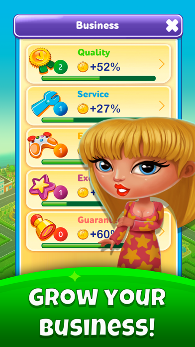 Earn your first profits and begin building new levels and opening stores, bars, salons, and shops.