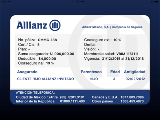 -Mis tarjetas: visualiza tu tarjeta digital de Gastos Médicos que podrás presentar en cualquier hospital dentro de la red de hospitales de Allianz México para ser atendido.