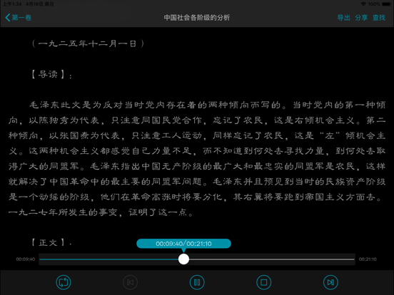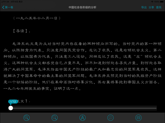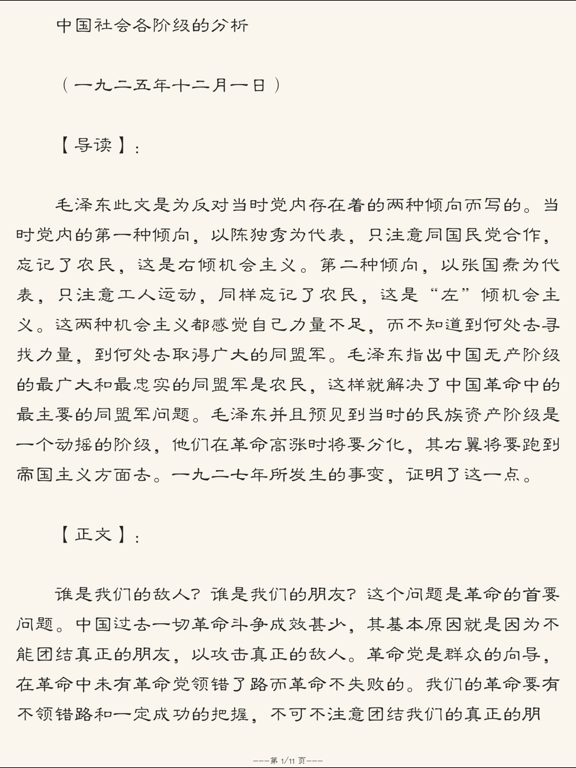 该APP汇集了目前公开出版的《毛泽东选集》一至四卷与《毛泽东诗词》。《毛泽东选集》是毛泽东思想的重要载体,是毛泽东思想的集中展现,是对20世纪中国影响最大的书籍之一。建国后出版的《毛泽东选集》一至四卷,编入的是毛泽东同志在新民主主义革命时期,也就是建国前的主要著作。