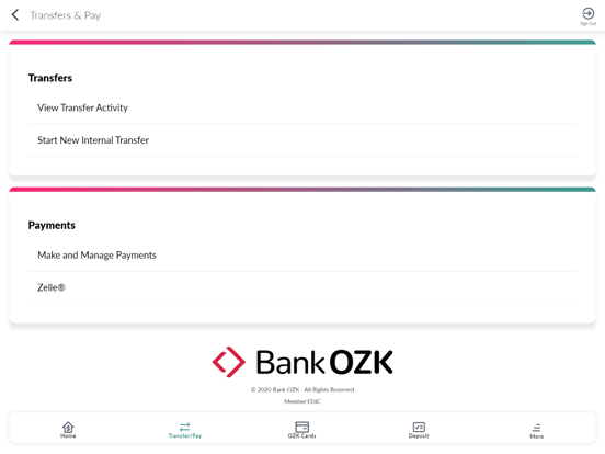• Transfer funds between Bank OZK accounts and other banks (4)