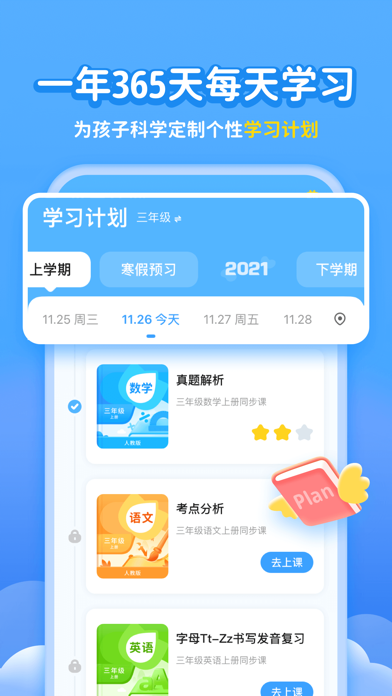 【科学的学习计划】首创“全科同步学习”体系,一年365天每天为孩子个性化的定制学习计划,