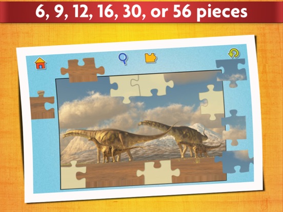 In this educational app for kids you can choose whether to use 6, 9, 12, 16, 30, or 56 pieces, adjusting the difficulty to your child's skill level.