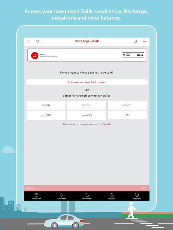 • “My Docs” providing a digital version of your valid driver’s license, vehicle registration cards & purchased special car plate number certificates, you can use this as an official document with other entities such as Dubai Police