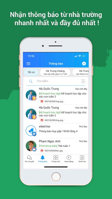 - Nắm bắt thời khóa biểu, kế hoạch học tập, thực đơn bữa ăn hàng ngày… của con.
