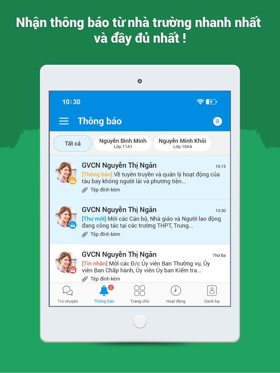 - Gửi / Nhận thông báo, thông tin điều hành đến các phòng, ban và các đơn vị trực thuộc, các giáo viên trong trường một cách dễ dàng và nhanh chóng nhất.