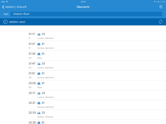 Ein Blick auf die öV-LIVE App genügt, um in Echtzeit zu erfahren, wann die nächsten Bahnen und Busse abfahren. Die aufgeführten Transportunternehmen in der Zentralschweiz und in Graubünden senden der Plattform öV-LIVE ständig ihren aktuellen Standort, woraus die Abfahrten und Fahrpläne live berechnet werden können. So berücksichtigt öV-LIVE beispielsweise Verspätungen wegen Baustellen oder Verkehrsüberlastung bereits ab der Ersten Minute. Nutzen Sie die App, um Ihre Reise flexibel zu planen und die Wartezeit zu optimieren.