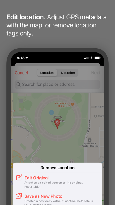 *Note: Remove Metadata, Date / Location Edit, and Safe Share are premium features, require single “Unlock Everything” in–app purchase.