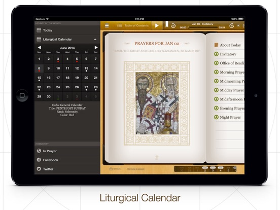 This version is the official prayer book of the Catholic Church, however, it is suitable for all Christian faith traditions. It contains the official text and audio of daily prayers from the Liturgy of the Hours of the Roman Catholic Church (Breviary) and has been approved for use in the United States by USCCB.