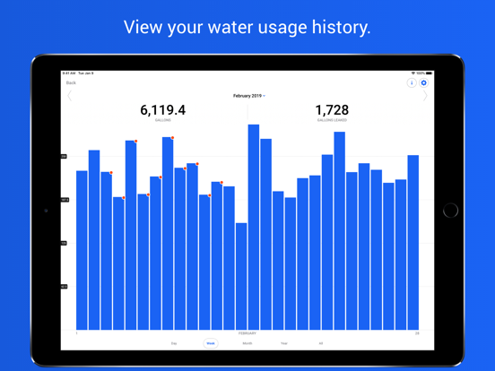 - View detailed water usage history by day, week, month, and year.