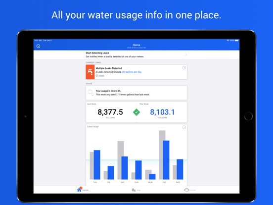 - Discover your short and long term water usage trends.