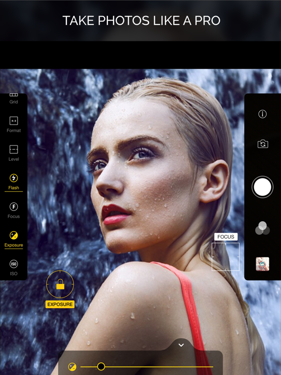 * Smart Focus & Exposure control - set and adjust them manually before taking a shot: