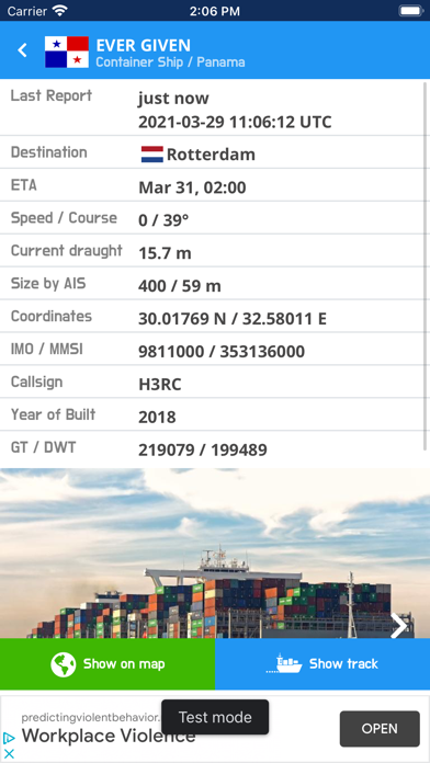 - Ship details - name, flag, type, IMO, MMSI, destination, ETA, draught, course, speed, gross tonnage, year of built, size, photo and more