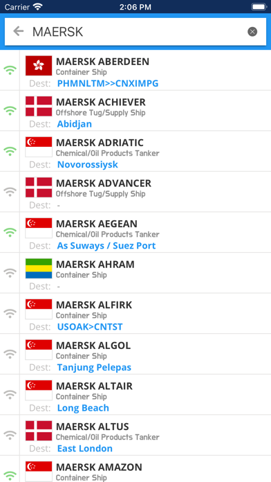 - Ship movement history - follow the track of each vessel for the past 24 hours