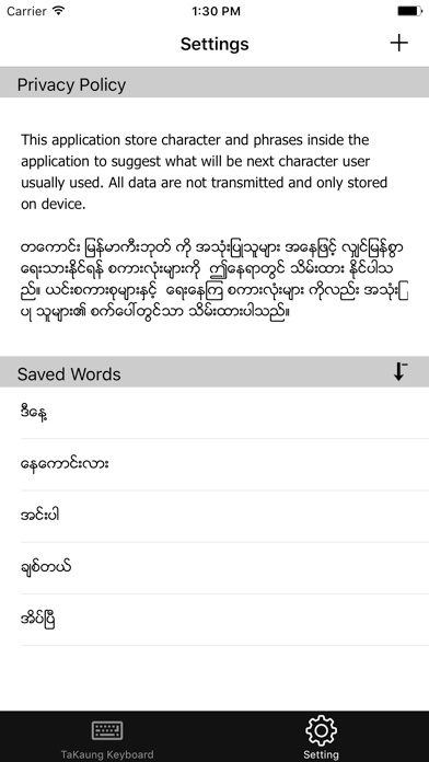 For example, if user type “Tha way htoo” and he usually type “Na”, this keyboard will show “Na” in the right side of keyboard in Auto-Suggest button.