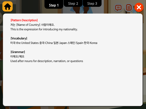 I can speak like a real Korean by role-playing with fourty live Korean conversational patterns!