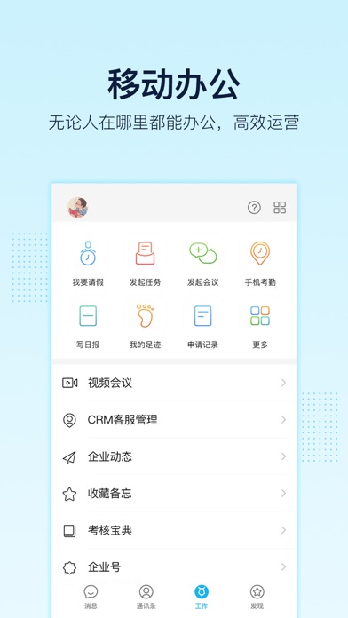 添加视频会议功能,实现实时视频会议,提高员工工作效率,实现无障碍办公。