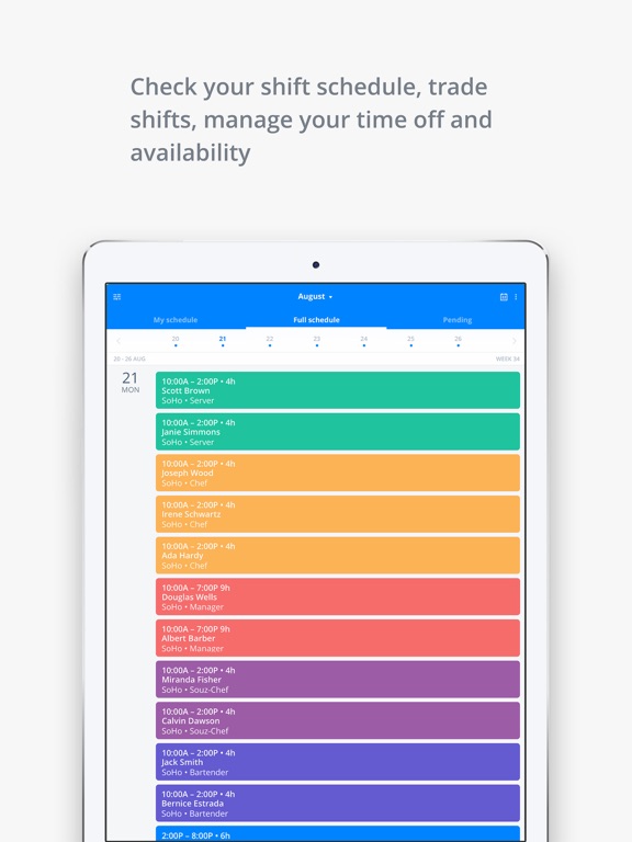 - Eliminate scheduling conflicts: See up-to-date employee availability, time-off requests, and avoid overlapping shifts and double-bookings.