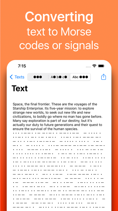 Utilities allow you to convert any text to Morse code on the fly, with the ability to view and listen. Allow to generate reports for sending by mail, adding to social networks.