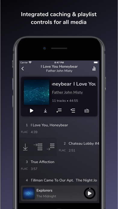 AVSub supports caching so you can listen to your music or watch video even when you're not connected to the Internet. AVSub will intelligently cache what you listen to in the background, or you can choose to download tracks, albums or videos direct to the cache for quick pre-loading. Cache size is configurable, along with options such as cache reading & writing and the ability to control direct-downloading over a mobile/cellular network.