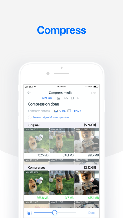 - Compress photos or videos into smaller file sizes - save up to 95% of space