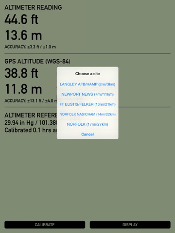 Proper calibration is necessary to measure altitude from barometric pressure (this is why a pilot "dials in" the cockpit altimeter before taking off). Pro Altimeter offers four different methods for calibration -- choose the easiest and most convenient: