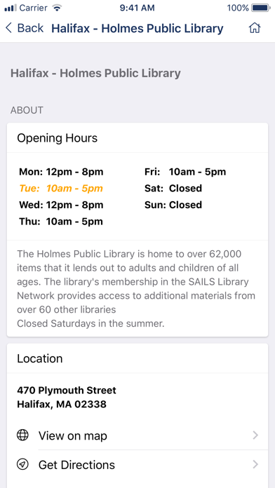 • Manage your account: Keep track of your account - view your checked-out items, holds, fines, and account information.
