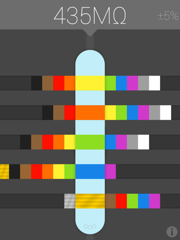 Graphic Resistor is the most beautiful resistor value calculator available on the App Store. This elegant, minimal, and easy to use app is a must have for anyone interested in electronics. - Supports 4 & 5 band resistors. - Slide the bands to set the resistor colors. - Tap number to enter values using a keypad. - Simple and easy to use. - Beautiful minimal design.