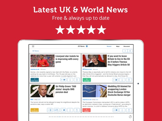 - Full coverage of the whole UK area - we have gathered for you dozens of news sources from around the web, and brought them to you in a simple, well designed app for your convenience. If a certain story was covered by more than one source, the app will group them together, and you can choose which source, or sources, you would like to read it from! No story will appear twice!