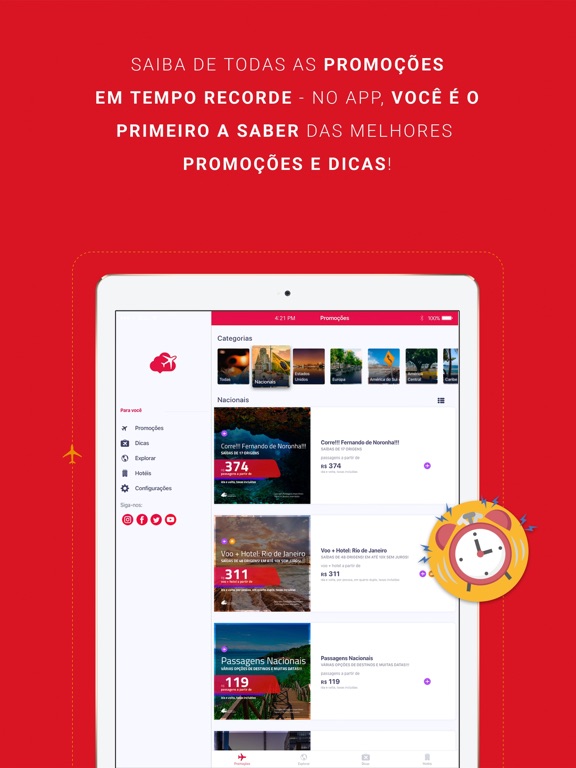 Sabe aquele velho problema de perder a oportunidade de garantir sua passagem imperdível, por ter tomado conhecimento da promoção tarde demais? Está resolvido! Através desta nova ferramenta disponibilizada pelo PI, a cada nova promoção publicada em nosso site e redes sociais, serão disparados "pushs", que lhe possibilitarão identificar e comprar, na hora exata, aquela passagem pela qual tanto esperava!